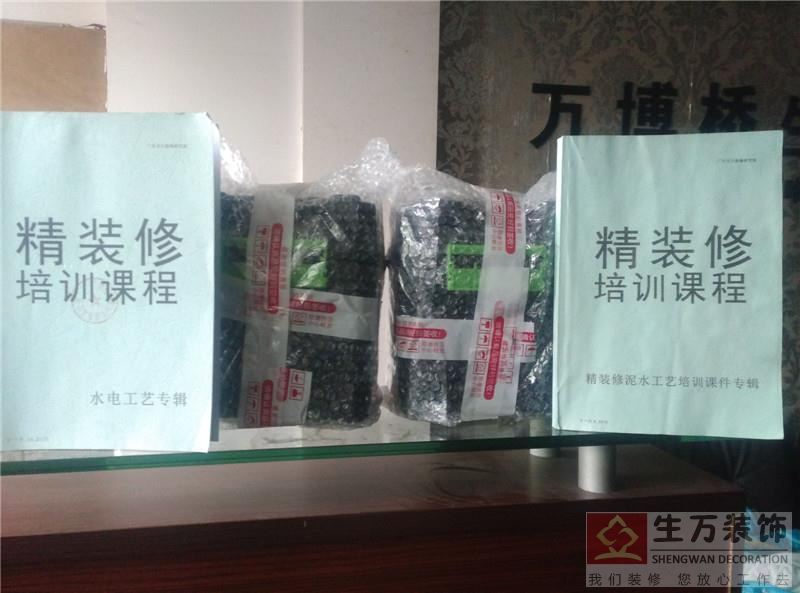 生万精装修技术指导基地,在技术指导基地,一个师傅带30个学员一个班,有贴瓷砖的师傅带着学习,有水电安装师傅带着学员学习水电工艺。
