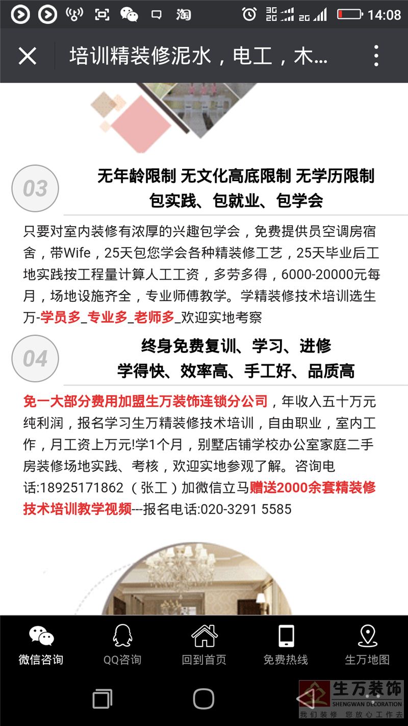 学习精装修技术,中途没有任何费用,包住宿,初八泥水开班,初九水电开班,准备报名学习生万精装修技术的学员,请关注开课时间或加张师傅微信:189 2517 1862 。